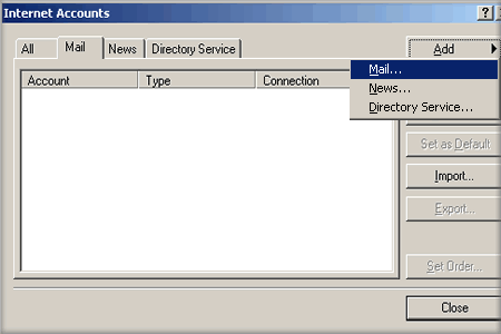 Yeni hesap oluşturmak için Add/Ekle butonundan Mail/Mesaj sekmesine basınız.