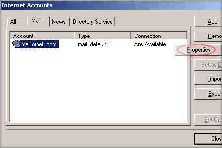 Eğer e-mail hesabınız kurulu ise e-maili seçerek Properties/Özellikler sekmesine basınız.